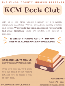 Love to read? We do, too! Join us for a biweekly book club starting July 7 at the Kings County Museum. We will be reading from a variety of genres. Sign up at kcmbookclub@gmail.com and we’ll send you a list of books to choose from and then we’ll get together for snacks and chat!