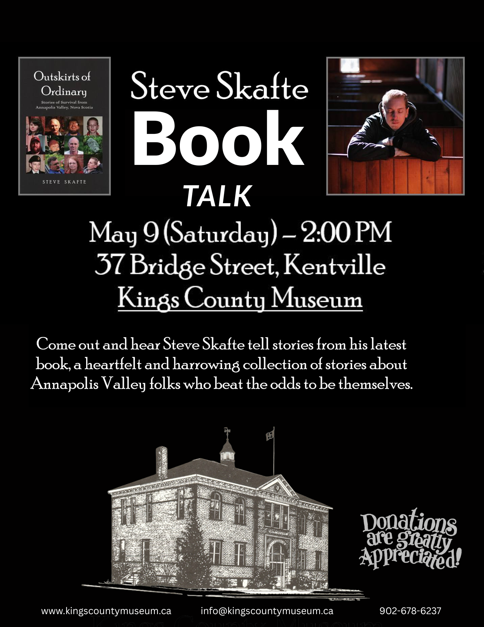 Join renowned photographer, author (Tales From Abandoned Nova Scotia, This River was Once a Road) ,adventurer and historian, Steve Skafte, as he shares heartfelt and harrowing stories from his latest book. Stories of Annapolis Valley folks who beat the odds to be themselves.
