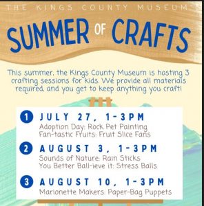 Wednesday afternoons from 1pm – 3pm: on July 27th, August 3rd, and August 10th