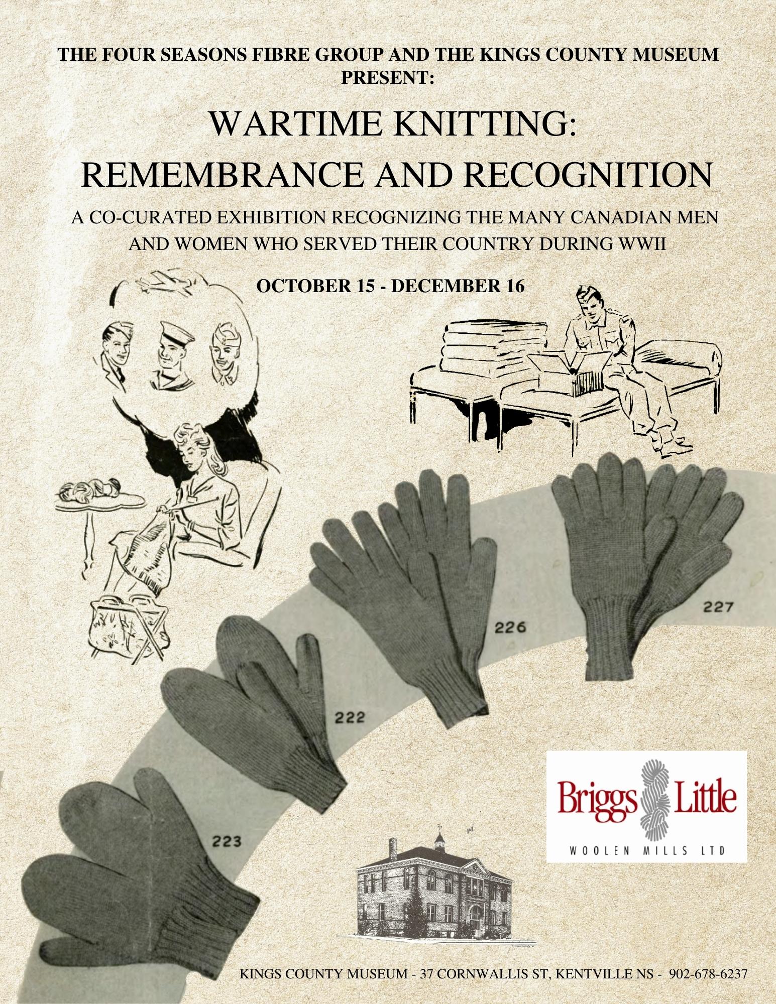 Kings County MuseumPlease join the Kings Historical Society and Four Seasons Fibre Group for the official opening of our exhibit; War Time Knitting: Remembrance and Recognition, an initiative created and formed in recognition of the many Canadian men and women who served their country during WWII and the achievements of Canadian women who knit garments for the […]